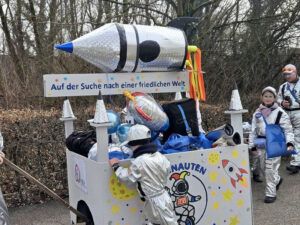 Mit dem Slogan „Auf der Suche nach einer friedlichen Welt“ waren die Solinauten“ dieses Jahr bei den Faschingsumzügen dabei.